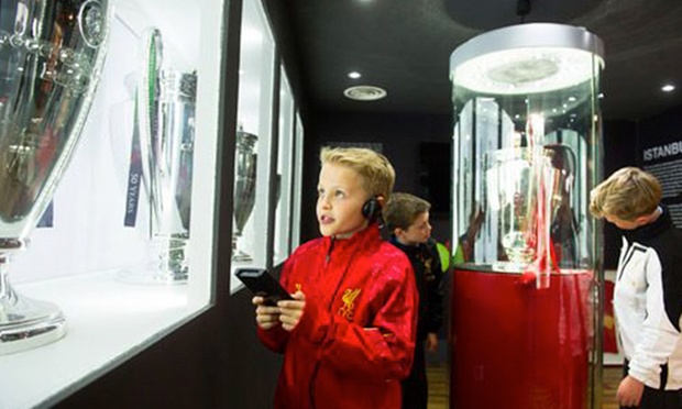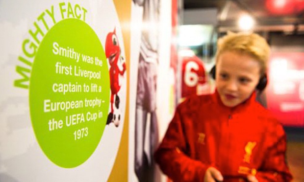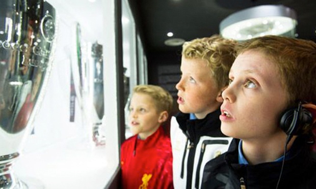 Booking: Required for the Boot Room Sports Cafe online via http://grouponbookings.co.uk/liverpool-football-club-tour/. 48-hour cancellation policy. Must present printed Groupon on arrival. Option to upgrade to a full Anfield Stadium tour on the day at the reduced price of £10 per adult or £5 per child, payable on arrival and receive a free voucher for entrance into The Liverpool FC Story worth up to £24 usable on another day.
