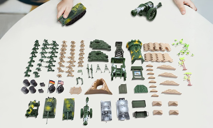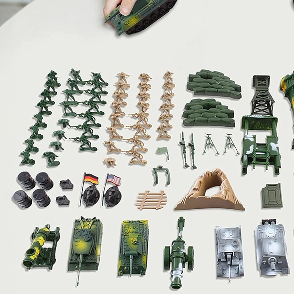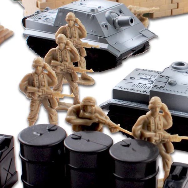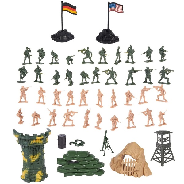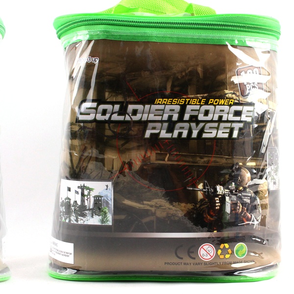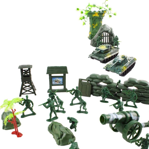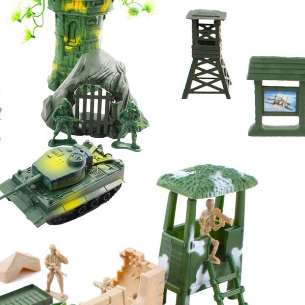 - Create an exciting military base with this 100-piece military play set, ideal for military or action figure enthusiasts