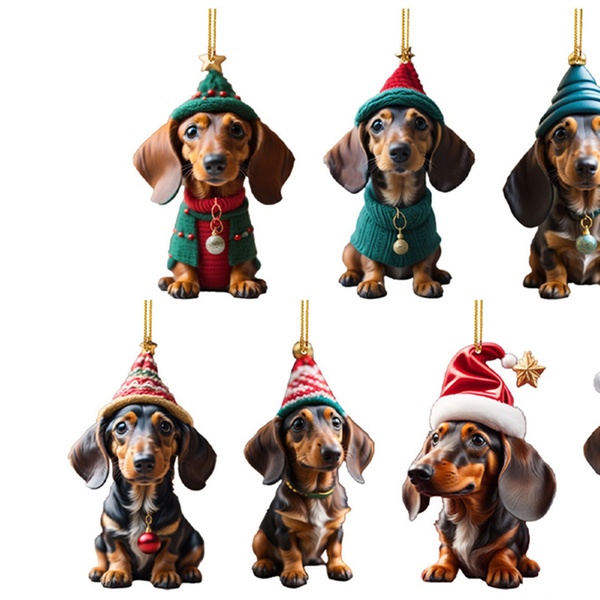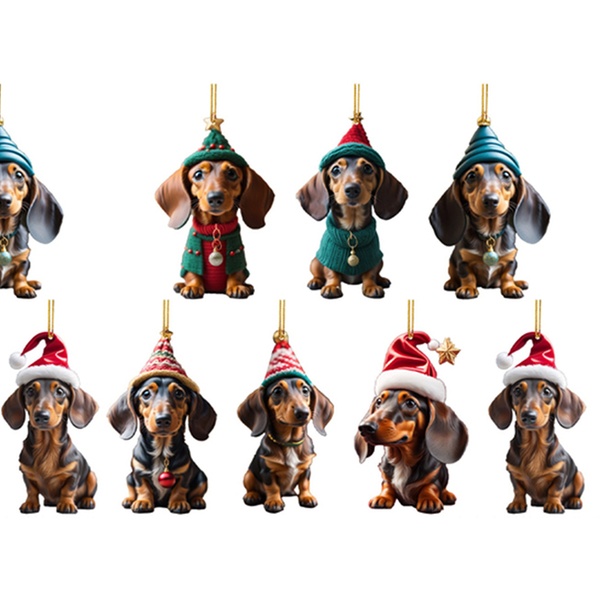 - Includes 14 stylish, 2D flat dachshund dog pendants for festive decor.