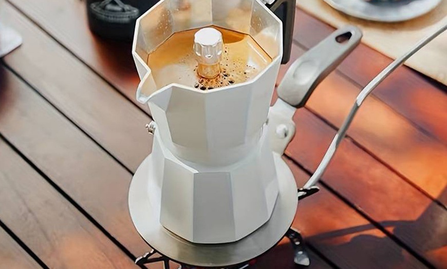 Today's Groupon offers 150ml Stovetop Espresso Moka Pot with a 13cm Induction Hob Adapter Plate, distributed by Shenzhen Yutuo Technology Co Ltd.