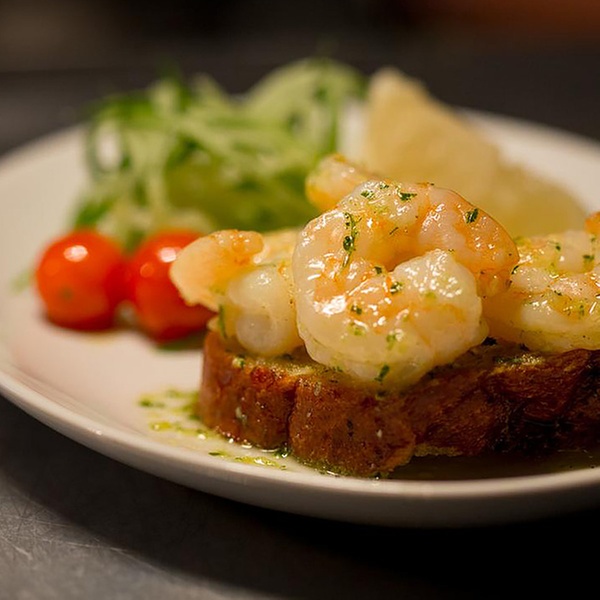 Selection of starters may include: garlic dough balls | bread and seasoned olives with an olive oil dip | garlic king prawns | soup of the day