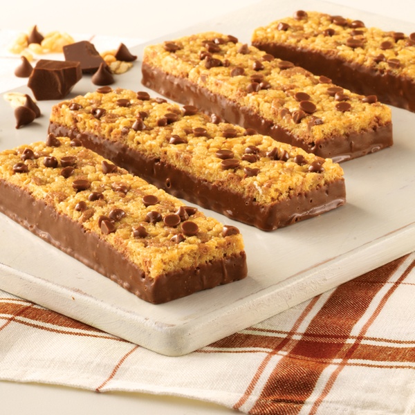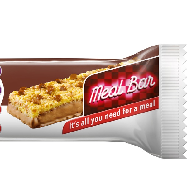 Ingredients: Oligofructose, protein crisp (21%) (soya protein isolate, tapioca starch, (stabiliser: calcium carbonate) salt), sweetener: sorbitol syrup; milk chocolate (13%) (sugar, cocoa butter, cocoa mass, skimmed milk powder, whey powder(milk), lactose (milk), butter oil(milk), emulsifiers: (soya lecithin, polyglycerol polyricinoleate); natural vanilla flavouring), milk chocolate chips (7%) (sugar, whole milk powder, cocoa butter, cocoa mass, whey powder (milk), skimmed milk powder, emulsifier: soya lecithin; natural flavouring), milk protein isolate, cocoa crispies(4%) (rice flour, sugar, cocoa powder, salt, rapeseed oil, emulsifier: soya lecithin), humectant: glycerine; sunflower oil, oats, stabiliser: dipotassium phosphate, pectose paste (fructose, dried glucose syrup, water, pectin, natural flavours), calcium carbonate, flavouring, ascorbic acid, vitamins and minerals1, emulsifier: soya lecithin; magnesium oxide, salt.