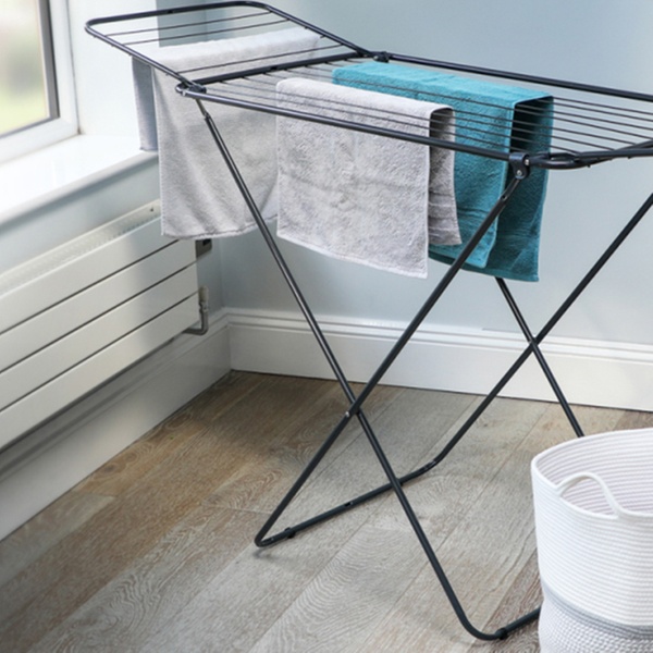 This rack is almost two meters wide and therefore good for hanging up a lot of laundry and can be folded away while not in use