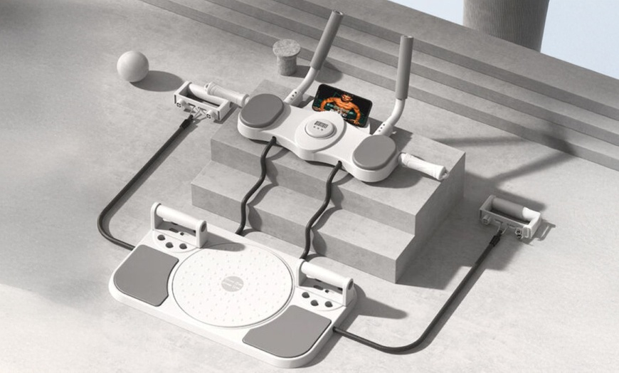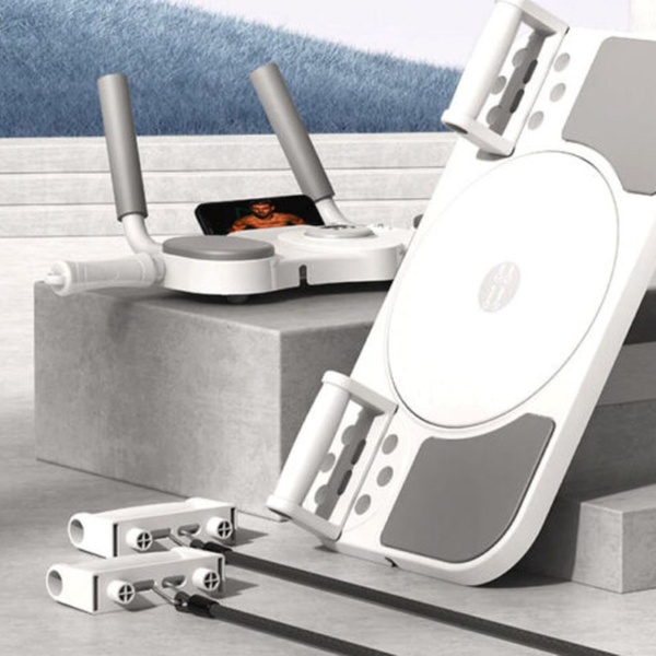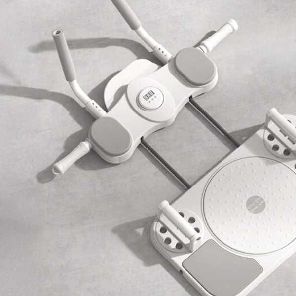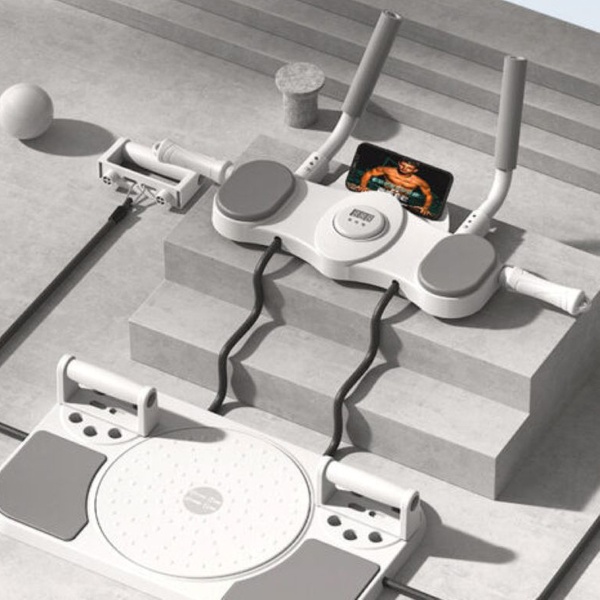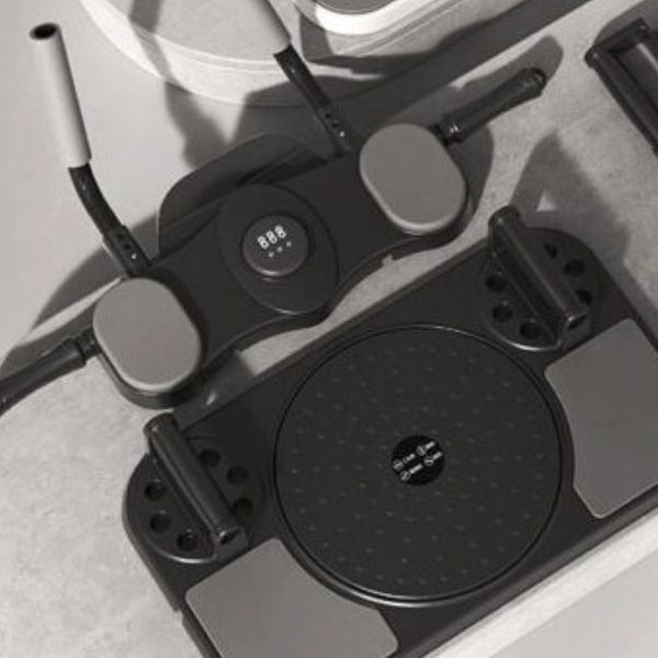 - Combines five workout modes: plank, abdominal wheel, waist-twisting disc, push-up, and resistance band exercises for full-body training.