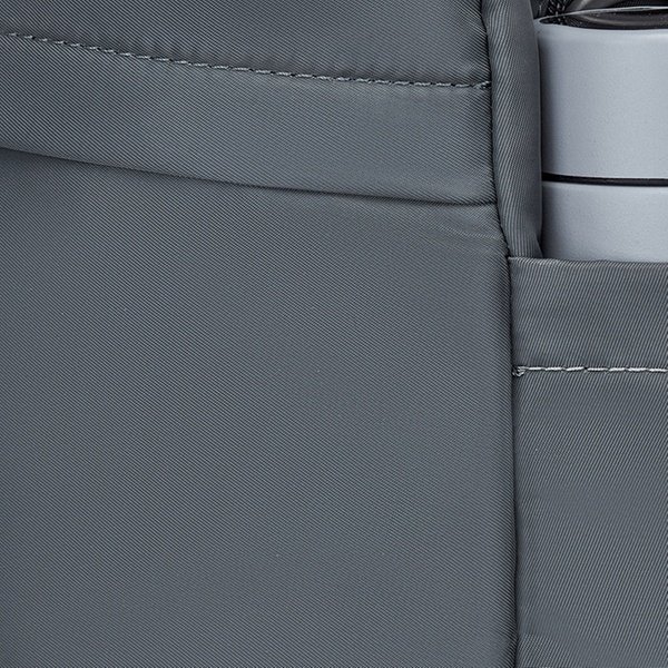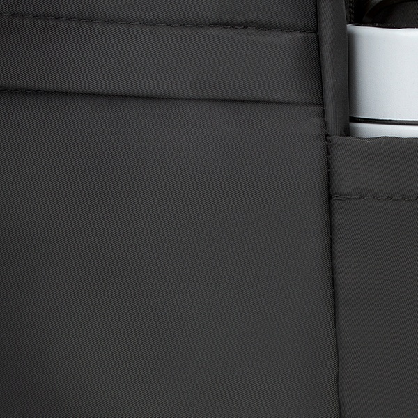 - Features multiple pockets: two hidden front zipper pockets and side water bottle pockets