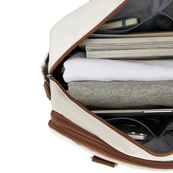- Includes an expandable wet/dry compartment and strap for holding clothes securely