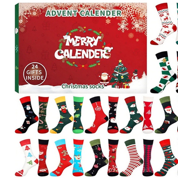 - 12 pairs of festive socks featuring fun, artistic Christmas designs
