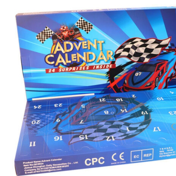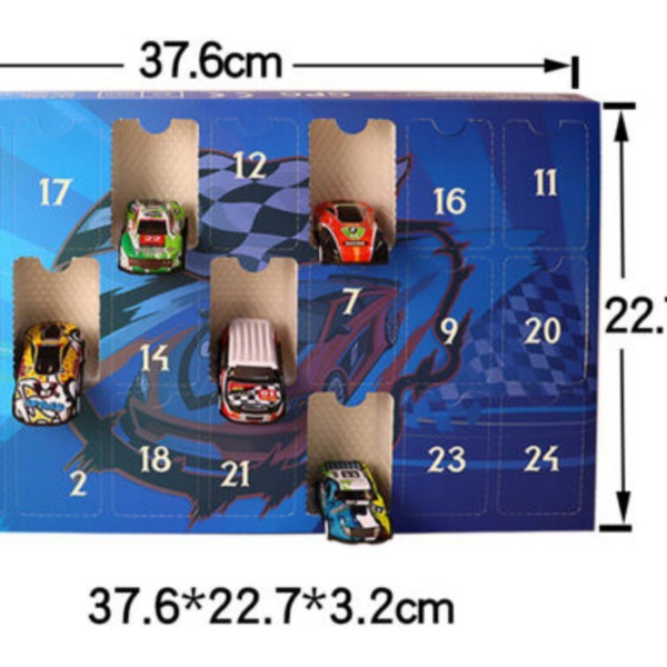 Unwrap excitement daily with 24 unique racing cars that fuel holiday fun and anticipation leading up to Christmas