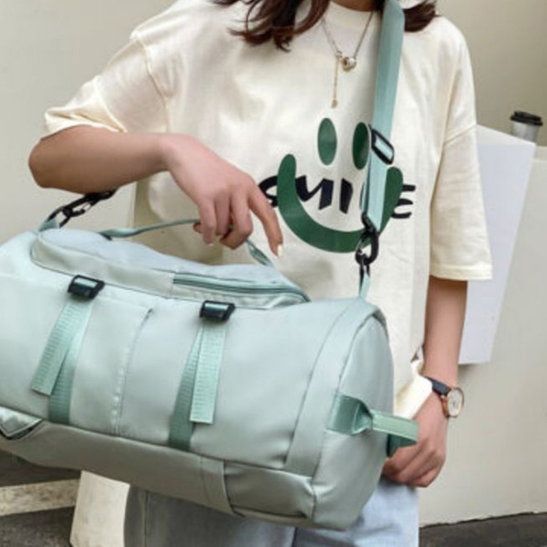 Featuring water-resistant Oxford cloth, this gym bag is ideal for keeping belongings dry during any adventure or workout