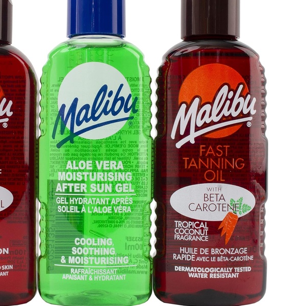 - Achieve a beautiful, sun-kissed glow with the Malibu Tanning Oil Trio, ultimate summer skin companion. This 3-in-1 bundle includes everything one need to tan, hydrate, and enhance the skin before and after sun exposure.