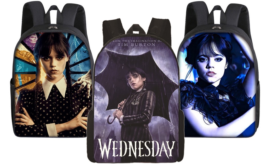 Today's Groupon offers a 3-Piece Wednesday Adams-Inspired Backpack Set, distributed by UKdreamstore.