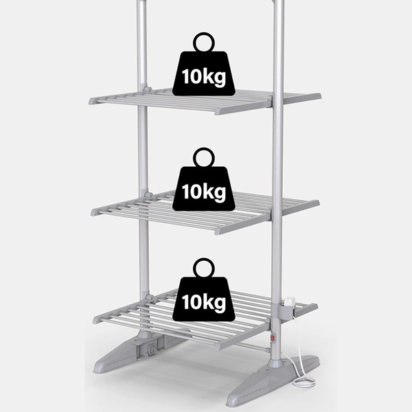 Effortlessly dry clothes with a compact 3-tier airer that warms gently for quick, wrinkle-free results; ideal for most fabrics