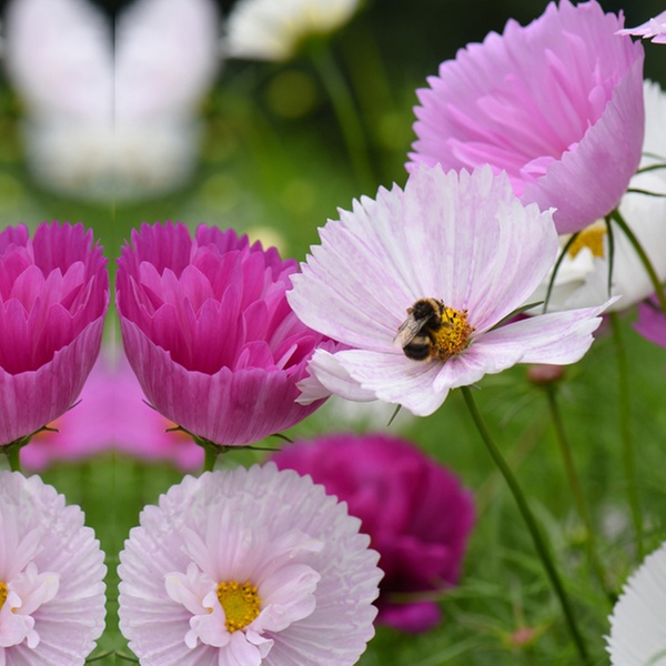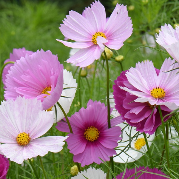 Ideal for summer displays, this elegant blend of Cosmos brings together a variety of flower forms and gentle pastel shades