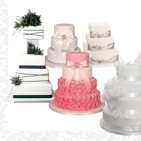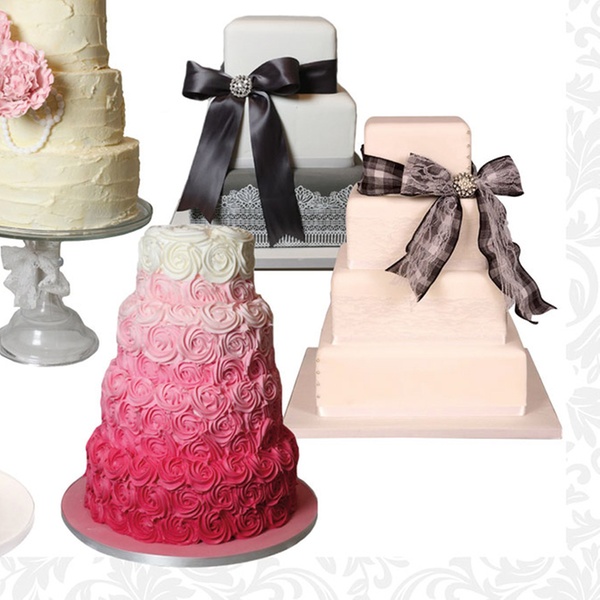 What's included: a three, four or five-tier wedding cake 46, 90, 96, 120, 126 or 180 portions wedding cake in a choice of 18 designs