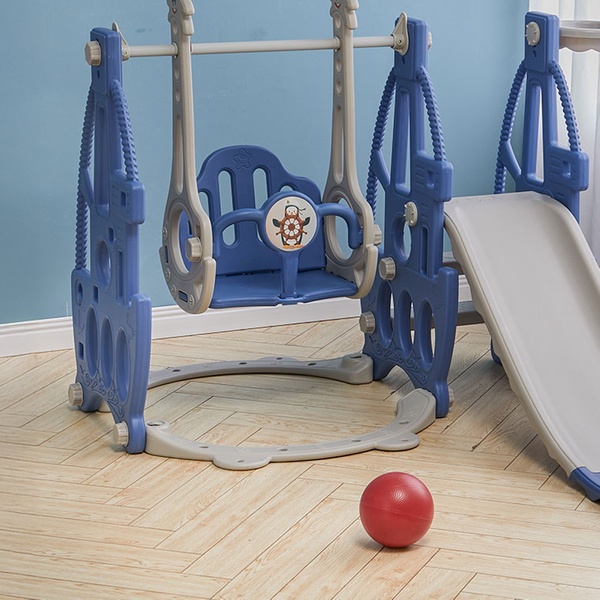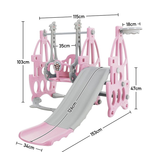 This playset features a smooth slide, secure swing, climbing ladder, and an engaging basketball hoop, creating a well-rounded activity hub that supports the child’s physical skills and social interaction.