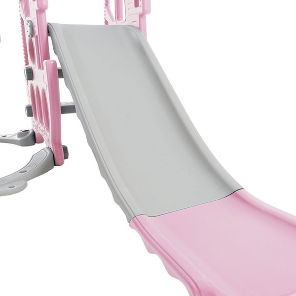 • The extended slide includes a gentle incline and raised side rails, providing toddlers with a steady and confidence-boosting ride.