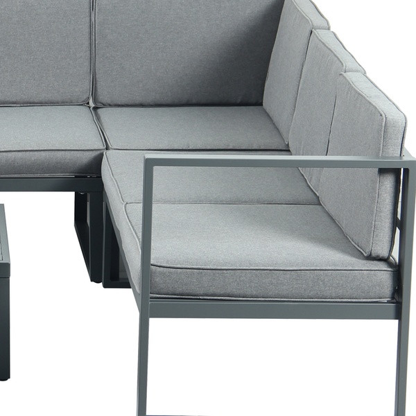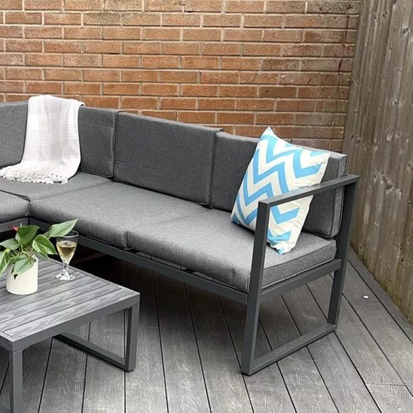 Crafted with a powder-coated metal frame, this corner sofa set blends strength and style, ideal for any modern outdoor space