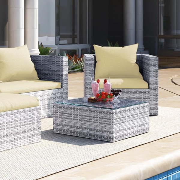 Add a contemporary, modern feel to the garden with this Garden Sofa Set, which has table glass tops are specified and supplied with tempered safety glass