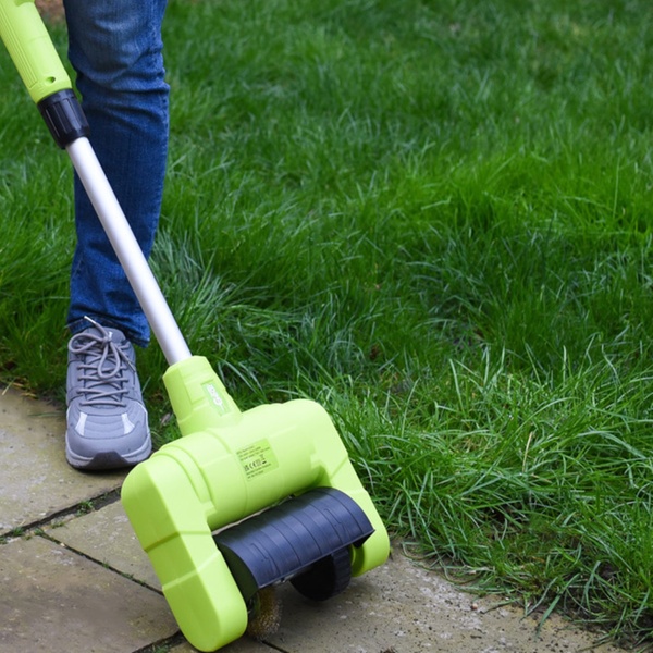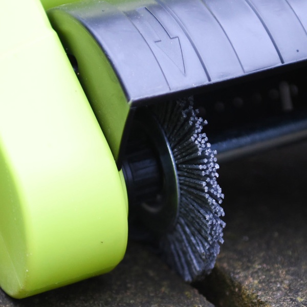 - The powerful 500W motor will rotate the hard-bristled roller brush to remove any moss, weeds or dirt that has gathered on the patio surface and a quick change to the weed sweeper brushes will allow the user to remove stubborn weeds, vegetation and moss from between slabs, block-paving and path edges
