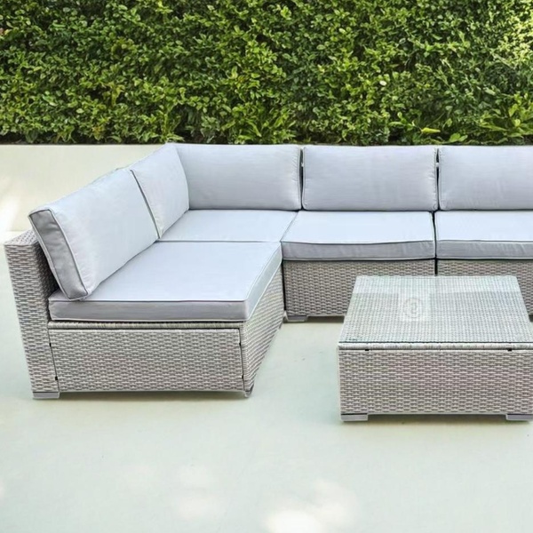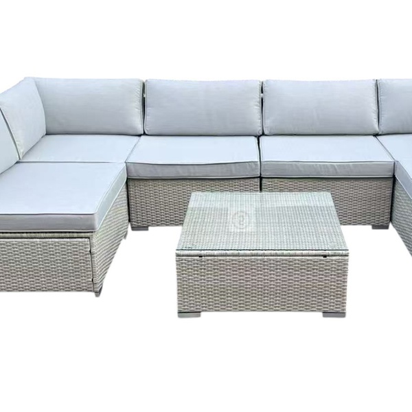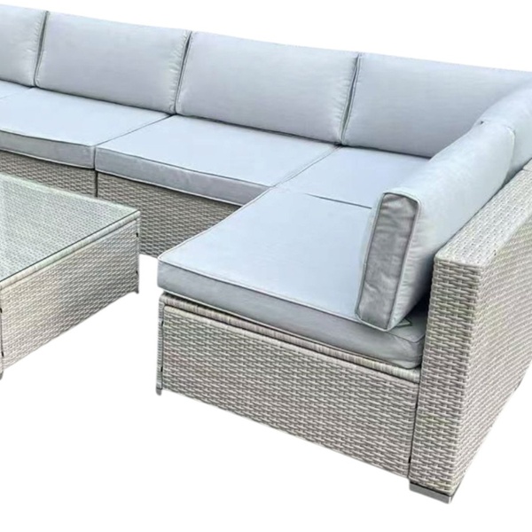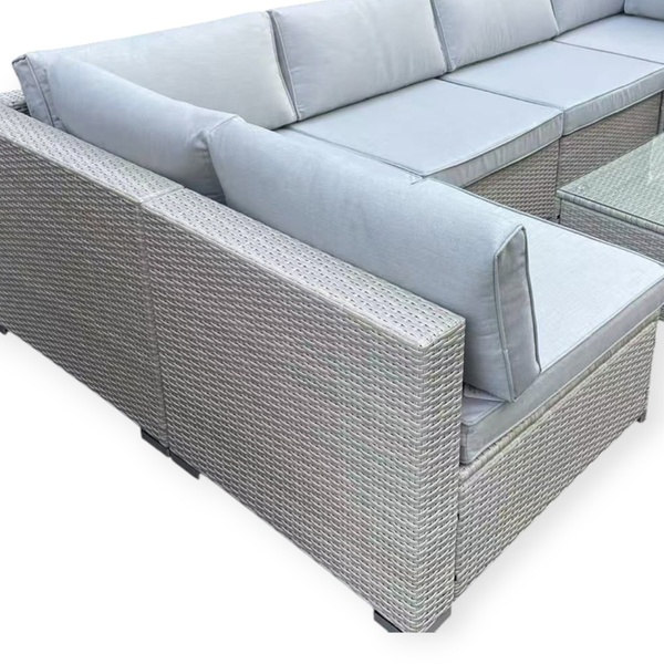 Crafted with weather-resistant rattan, this U-shaped garden furniture set promises durability and versatile outdoor styling.