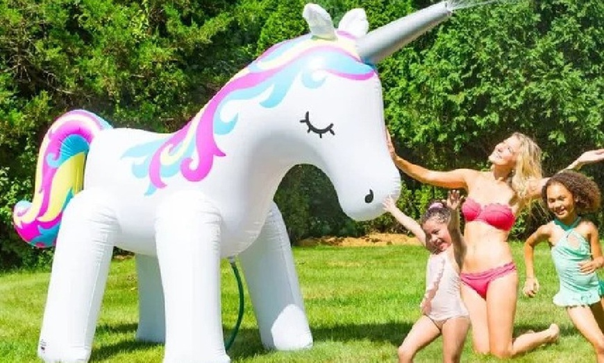 Today's Groupon offers 6ft Inflatable Unicorn-Themed Sprinkler, distributed by Hirix International Ltd.