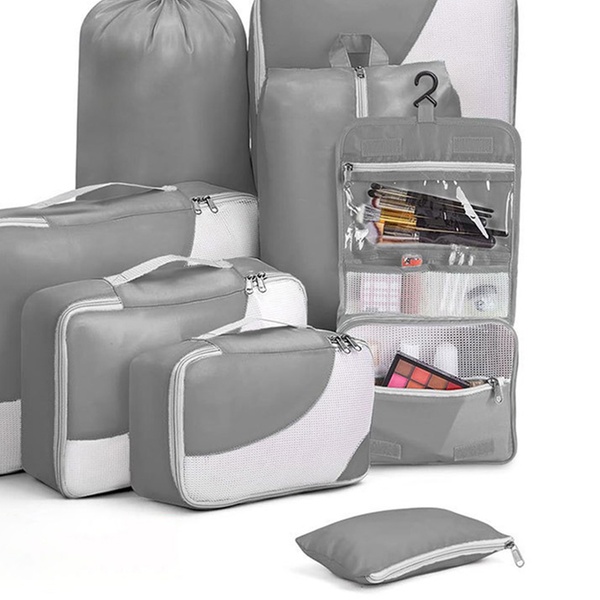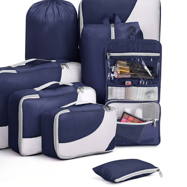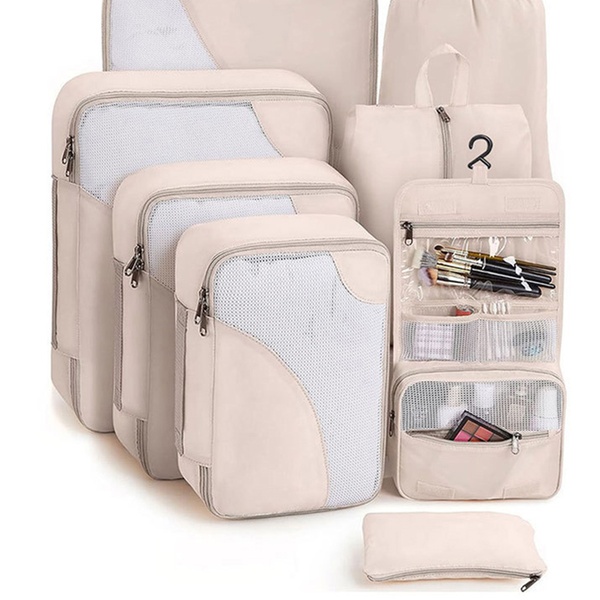 - Includes 8 essential bags: 4 cubes, 1 toiletry bag, 1 shoe bag, 1 double shoulder bag, and 1 accessory bag