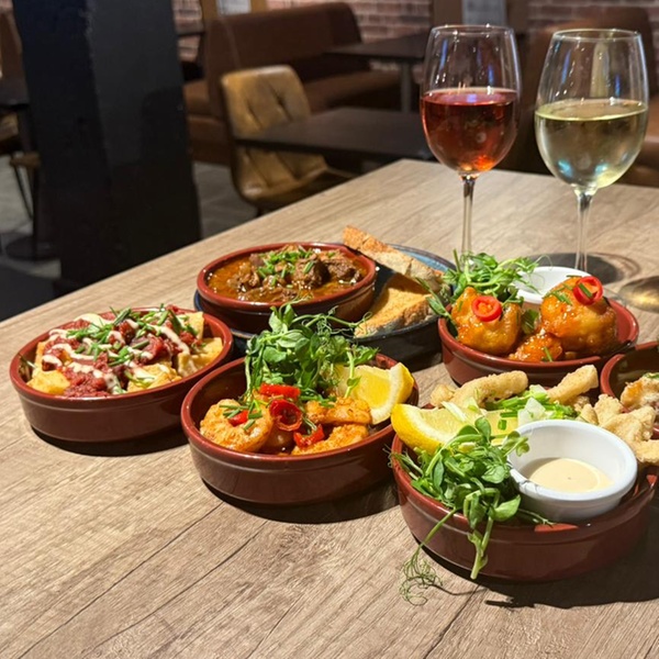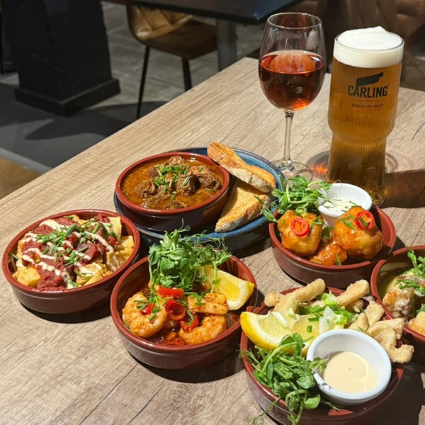 Enjoy a vibrant dining experience with Abajo’s tapas sharing offer. Choose from 6 tapas for 2 people, 9 tapas for 3 people, or 12 tapas for 4 people. Each guest also receives a glass of wine or a pint, making it the perfect mix of flavor and fun—ideal for a casual night out or a group celebration.