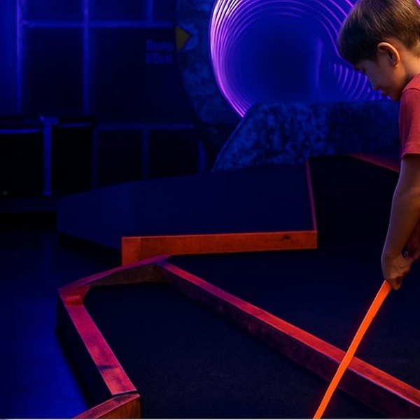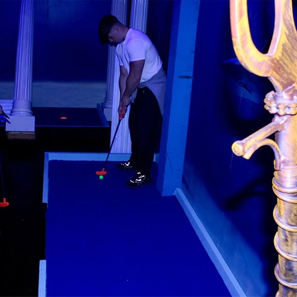 Dive under the sea, zoom into space—this 18-hole neon mini golf adventure is family fun with food, drinks & party vibes all in one!