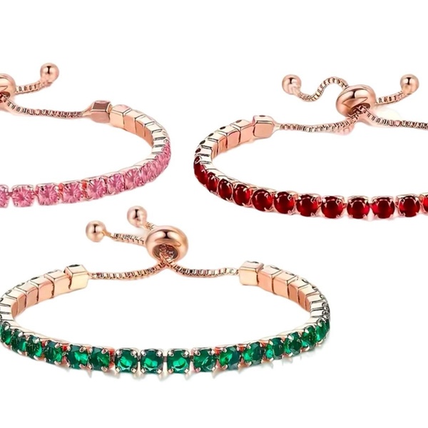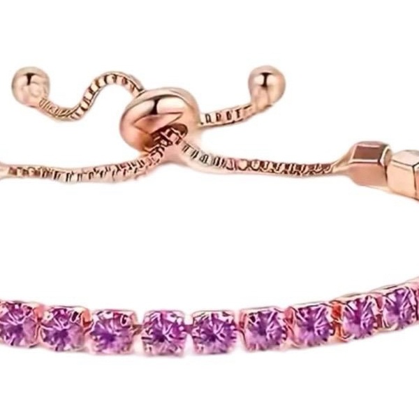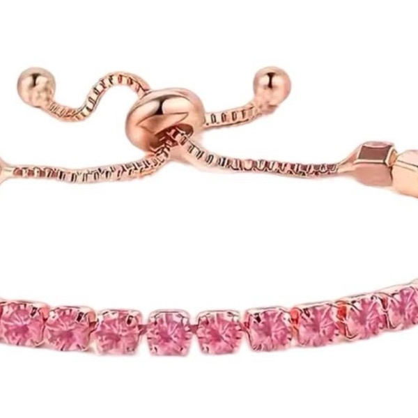 This adjustable friendship crystal bracelet boasts a chic rose gold tone, ideal for adding a touch of elegance to any ensemble