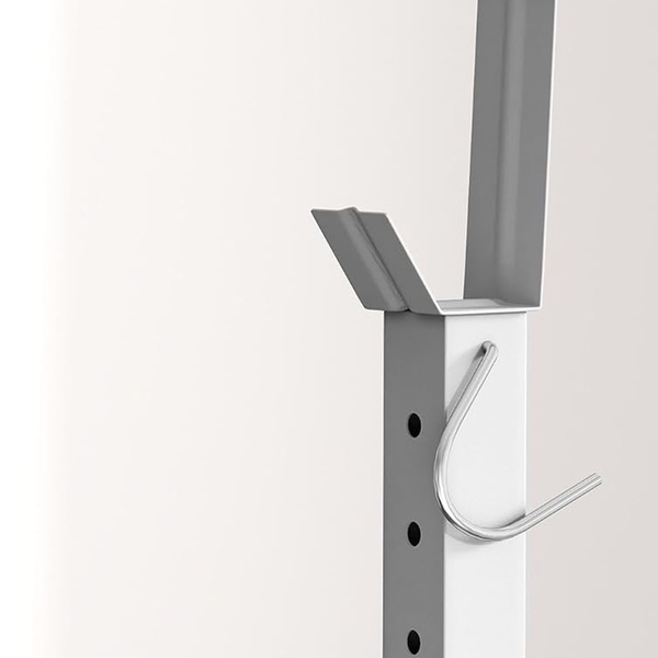 - Height-adjustable barbell rack with 6 levels for customizable comfort