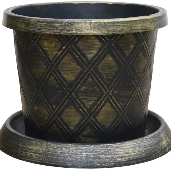 • Patio Pot supplied as Plastic Flowerpot & Saucer in black and gold