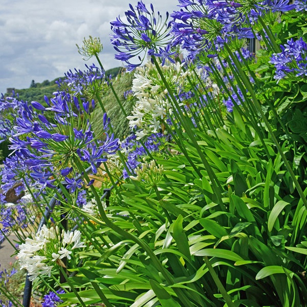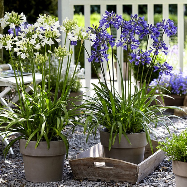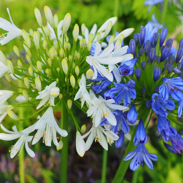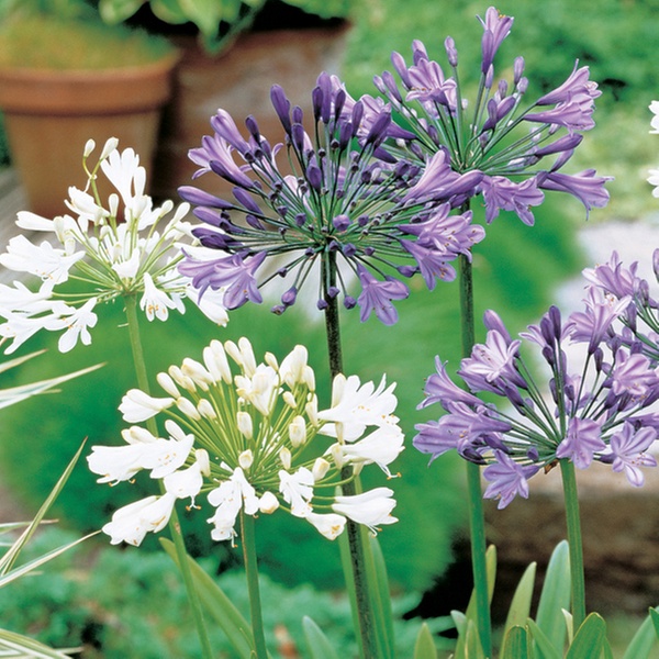 This collection of blue and white agapanthus is an ideal addition to sunny garden borders or patio containers