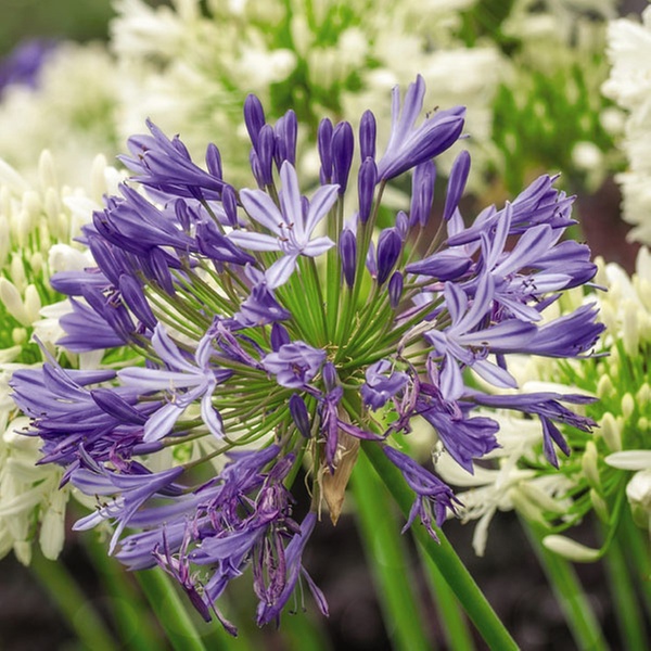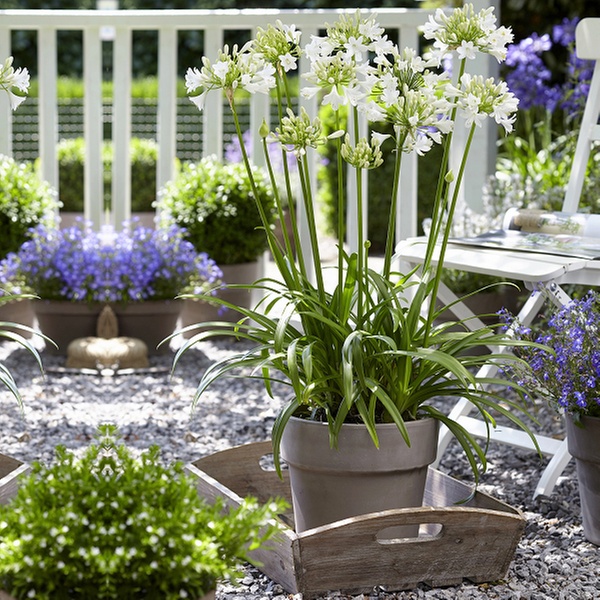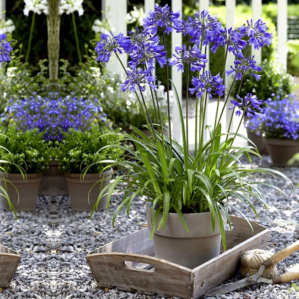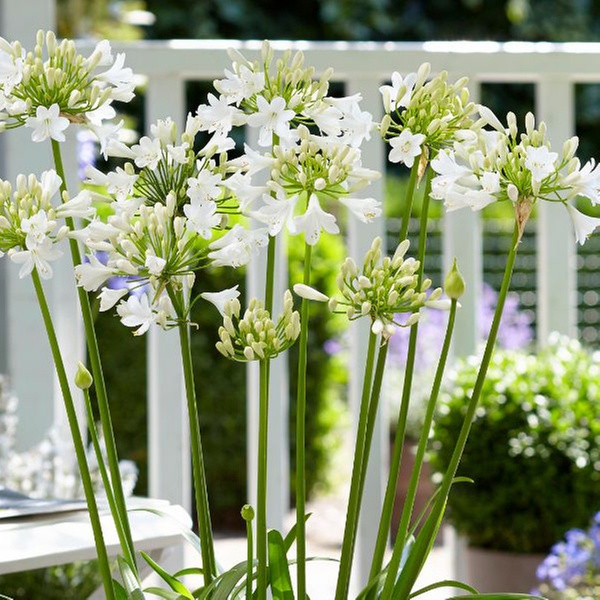 This collection of blue and white agapanthus is an ideal addition to sunny garden borders or patio containers
