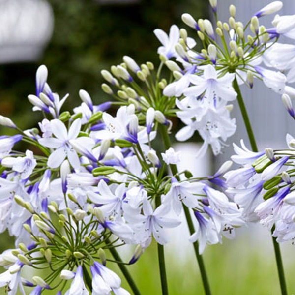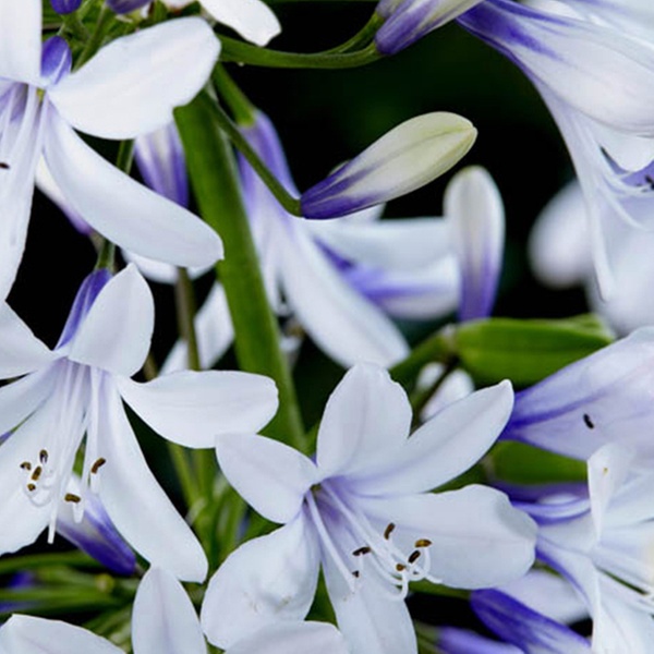 - Bi-coloured blooms with white buds, rich blue bases, and white tips