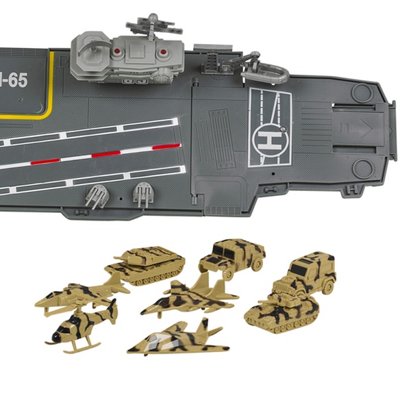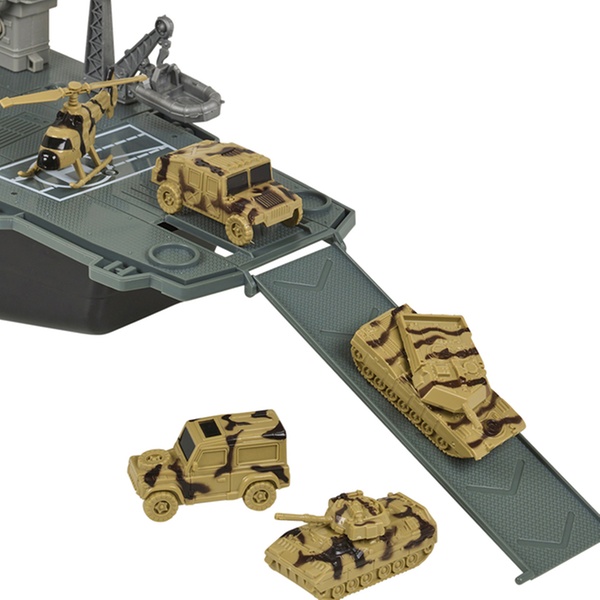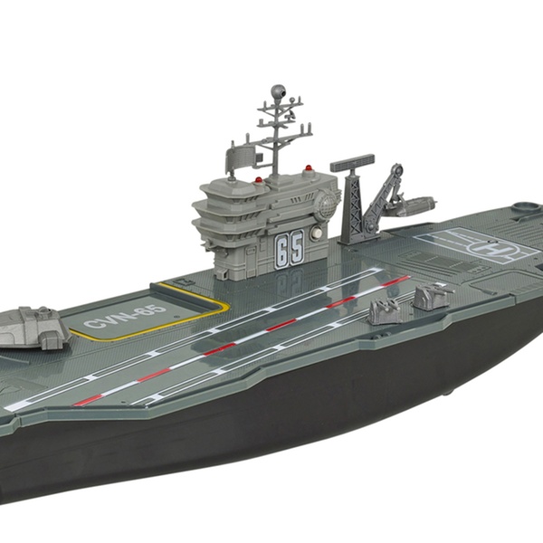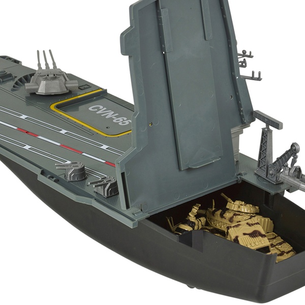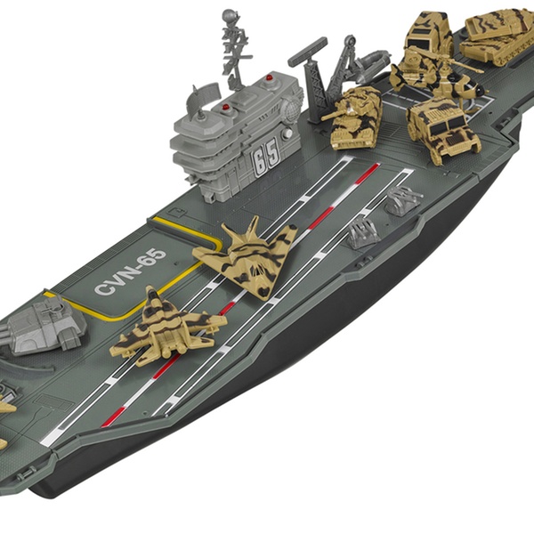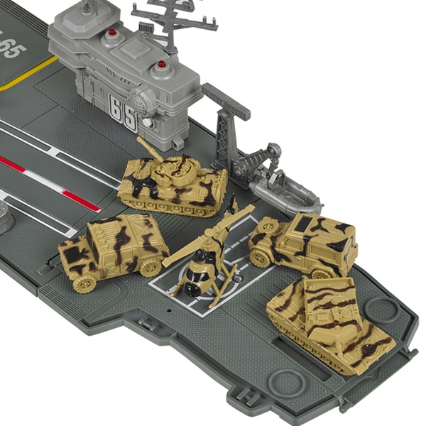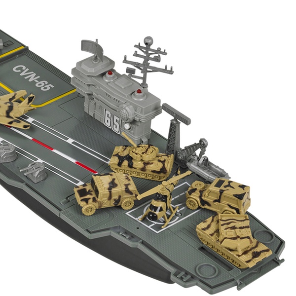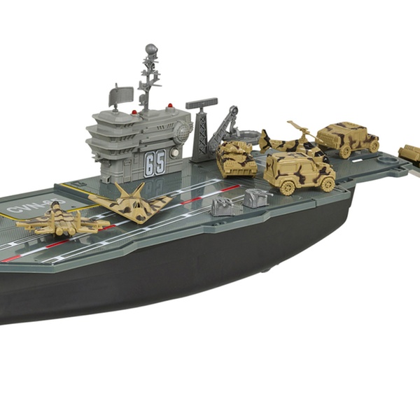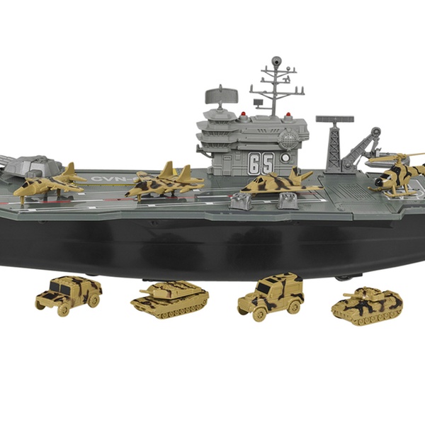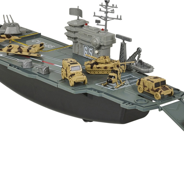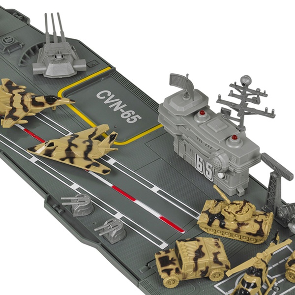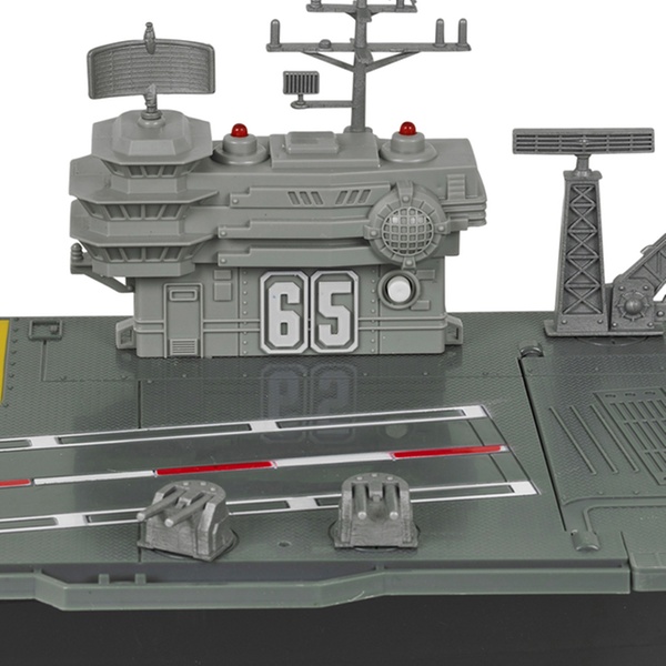 Prepare for battle with this large aircraft carrier playset, which includes a control tower with flashing lights and sounds