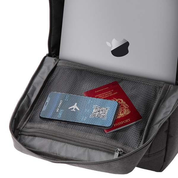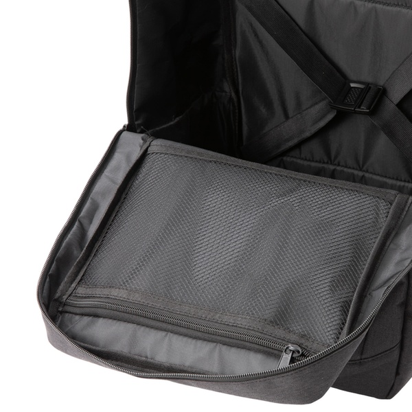 - Has a half zip opening for quick access and a rear strap to slide over suitcase handles for hands-free travel.