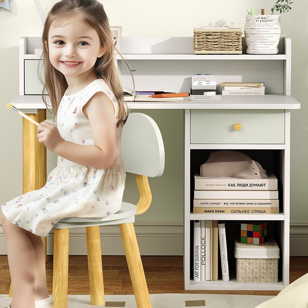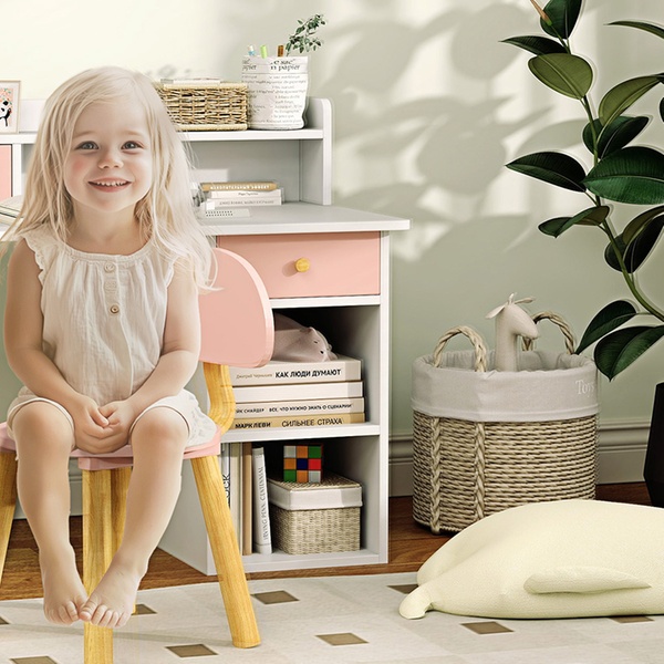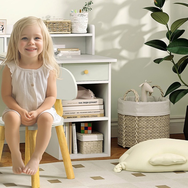 Designed with rounded corners for enhanced safety, this kids’ desk and chair set inspires creativity and keeps learning fun