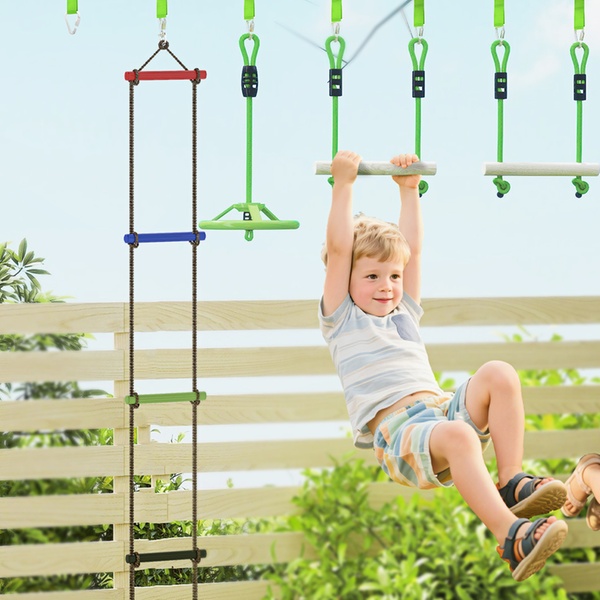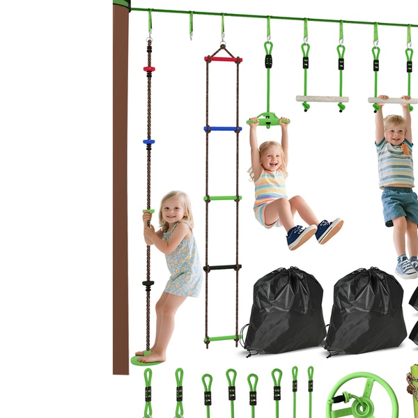 - Includes six zip line kits for exciting outdoor play