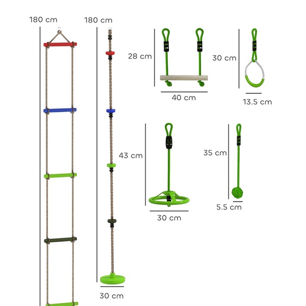 - Climbing ladder: 180cm (H) x 30cm (W)