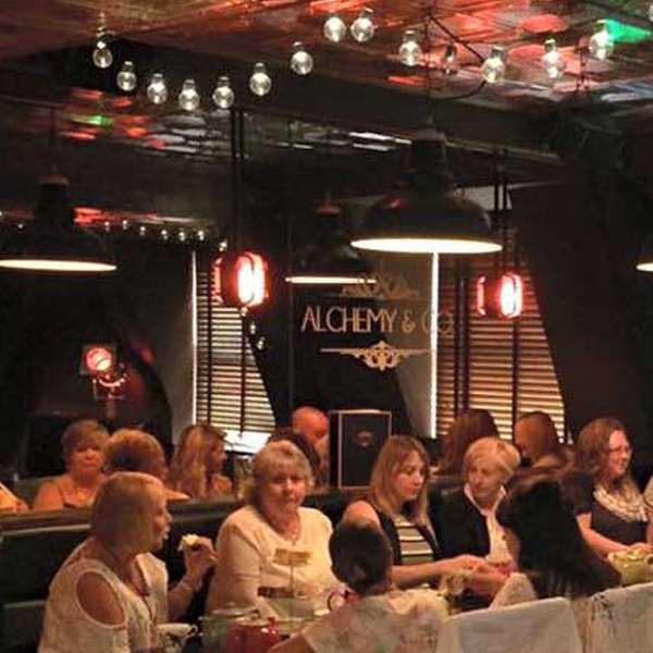 The interior of Alchemy & Co features a modern interpretation of vintage style. A team of bartenders whip up a selection of cocktails, and a bar menu sates guests' hunger pangs with a selection of snacks. The venue plays host to regular jazz nights, and features a key-code entry giving it an exclusive feel.