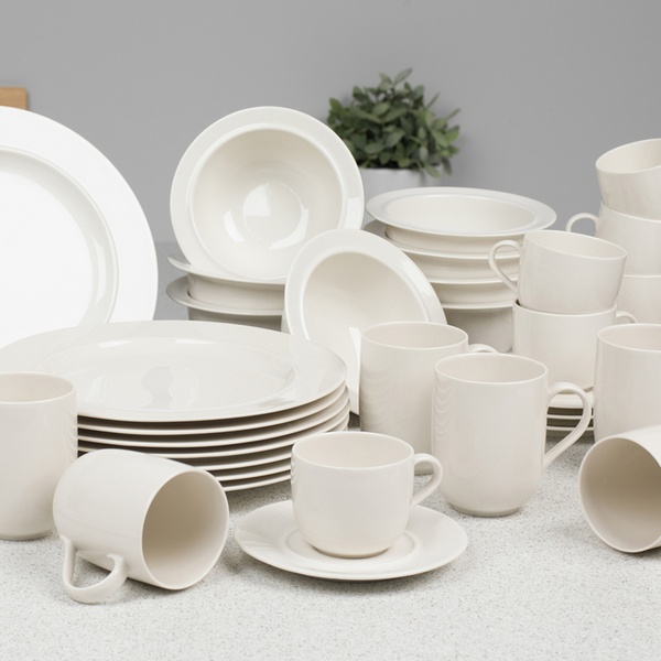 Dine with a style with this set of porcelain crockery, featuring a modern design that can match most dinnerware sets