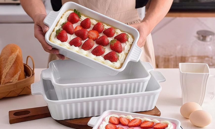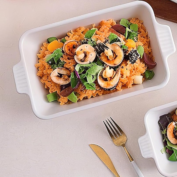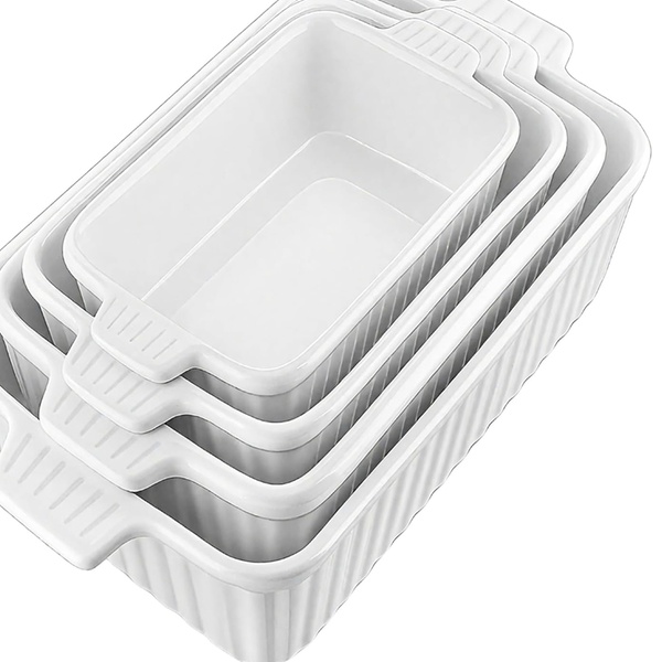 - Premium 4-piece ceramic baking dish set for versatile cooking and serving
