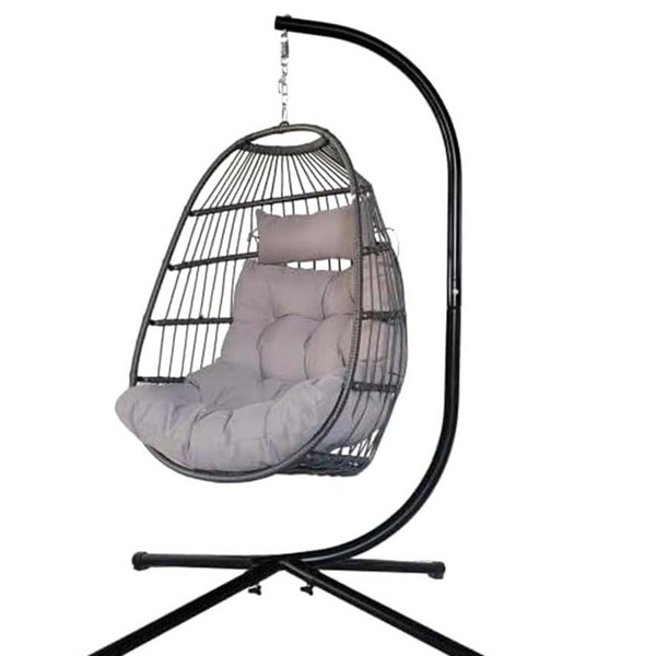 Alivio Rattan Effect Hanging Basket Egg Chair with Cushions