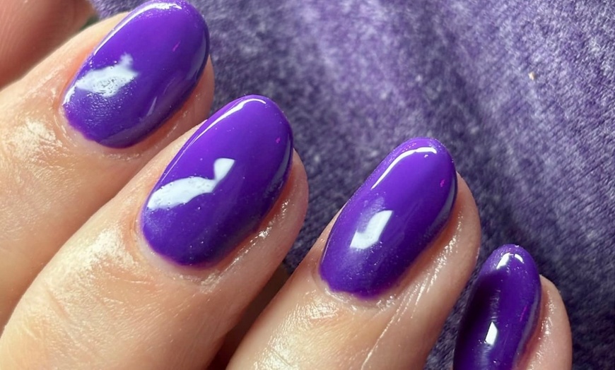 Transform your nails with a high-gloss finish using hypoallergenic gel. Enjoy expert filing, shaping, and cuticle care!