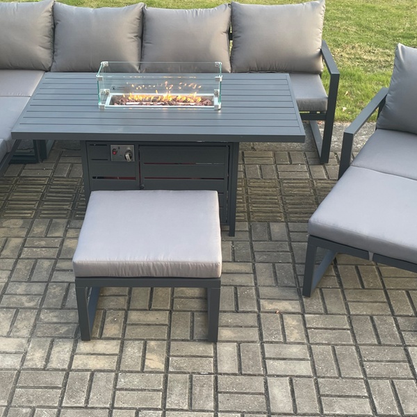 - Aluminium Outdoor Garden Furniture Gas Fire Pit, Dining Table Set