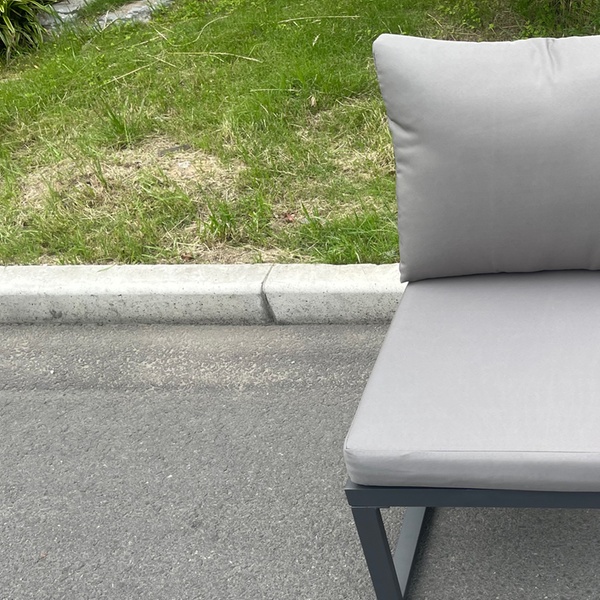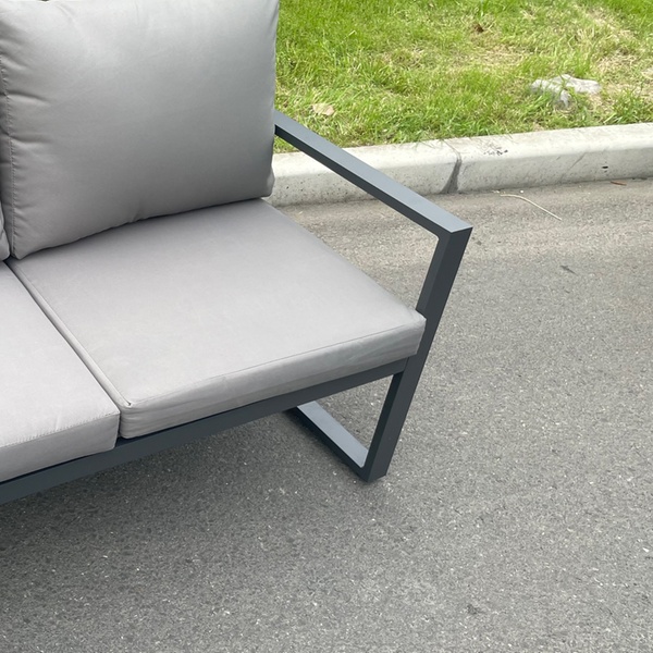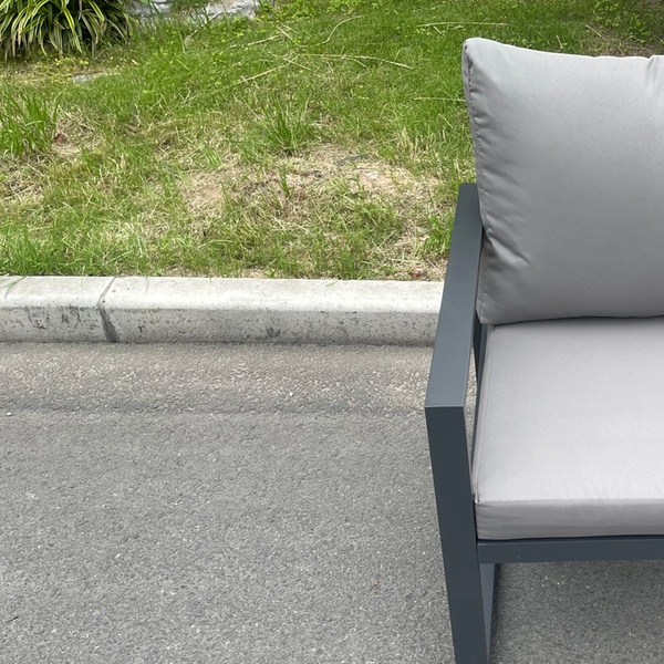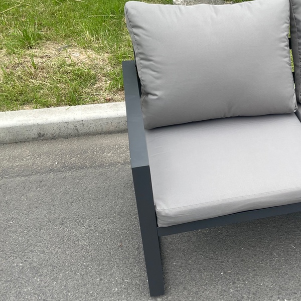 - Dark grey powder-coated aluminium with dark grey fabric cushions