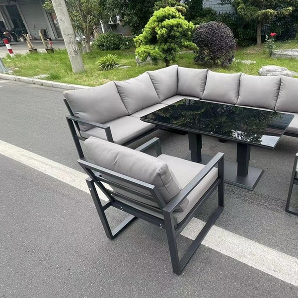 Featuring a sleek, adjustable height design, this dining table effortlessly blends style with versatility for any outdoor space