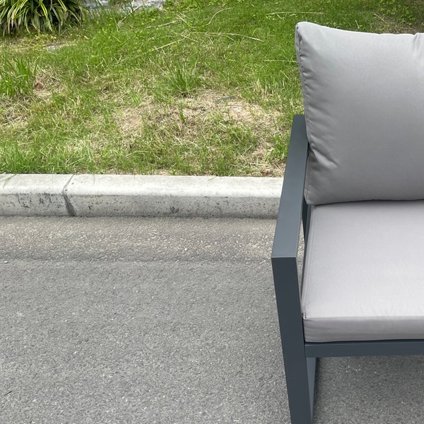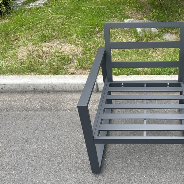 - Features a dark grey powder-coated finish with matching dark grey fabric