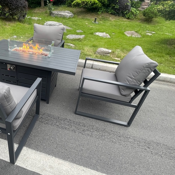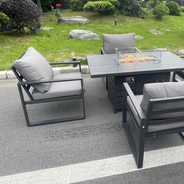 This deluxe Aluminum Firepit dining set is a great addition to patio or garden, made of Alloy aluminum and powder coating for sturdiness and structural durability