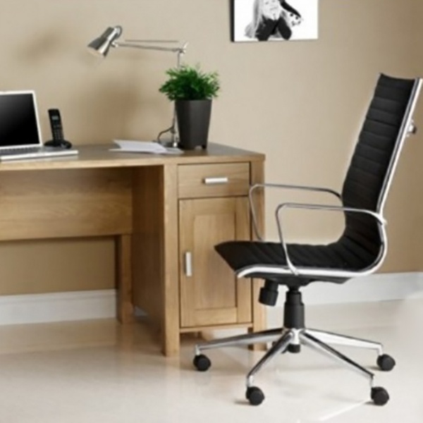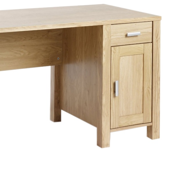 This contemporary desk features an elegant oak finish and provides plenty of storage space for stationery, books, folders and more